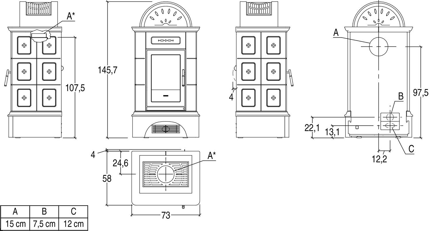 • Дровяная печь Piazzetta Stubotto BRUNICO с естественной конвекцией и облицовкой из майолики предназначена для настенной или угловой установки и относится к классу энергоэффективности A+. Печь доступна в цвете Bianco или в двухцветных вариантах Bianco Antico с Blu Verdemare, Canapa, Terra Bruna и Verde Mirto, а также с ручной росписью.
